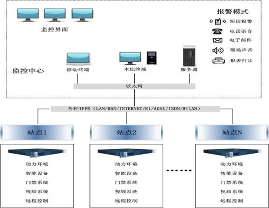 系統(tǒng)不僅可實(shí)現(xiàn)監(jiān)控的本地管理,并可提供高可靠的遠(yuǎn)程管理,管理者可在 Internet 上通過 web 瀏覽方式,實(shí)現(xiàn)在任意終端上的遠(yuǎn)程查看各機(jī)房?jī)?nèi)設(shè)備、系統(tǒng)的運(yùn)行情況,如果權(quán)限允許也可對(duì)設(shè)備、系統(tǒng)進(jìn)行控制管理。